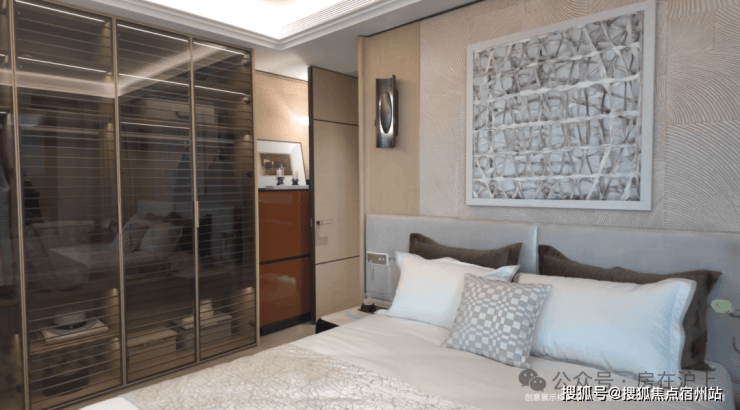 主卧套房面宽约4.8米,采用酒店式配置,配备独立卫浴与超大飘窗,尺度与舒适度俱佳。
