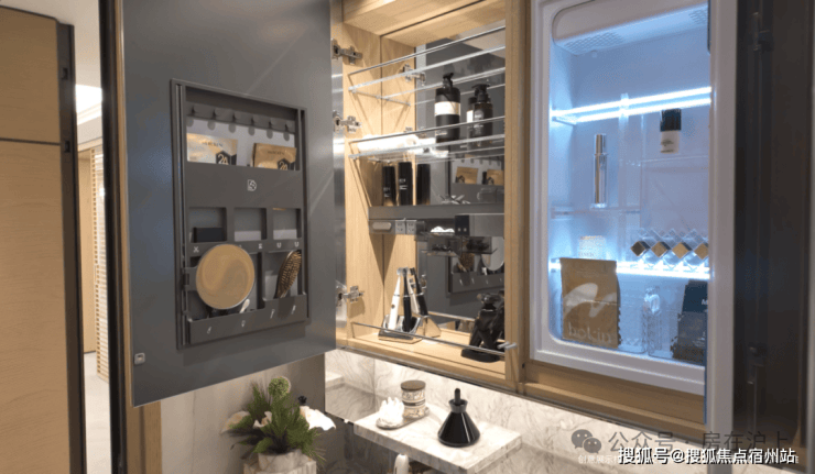 主卫空间更是升级为私人美学沙龙,配备科勒维C美研龙头,具备过滤余氯与微气泡洁面功能;奥普光子嫩肤浴霸让沐浴同时兼具护肤效果。再结合美妆冰箱与镜箱,共同构成独特的“美颜四件套”,悉心呵护日常仪容。