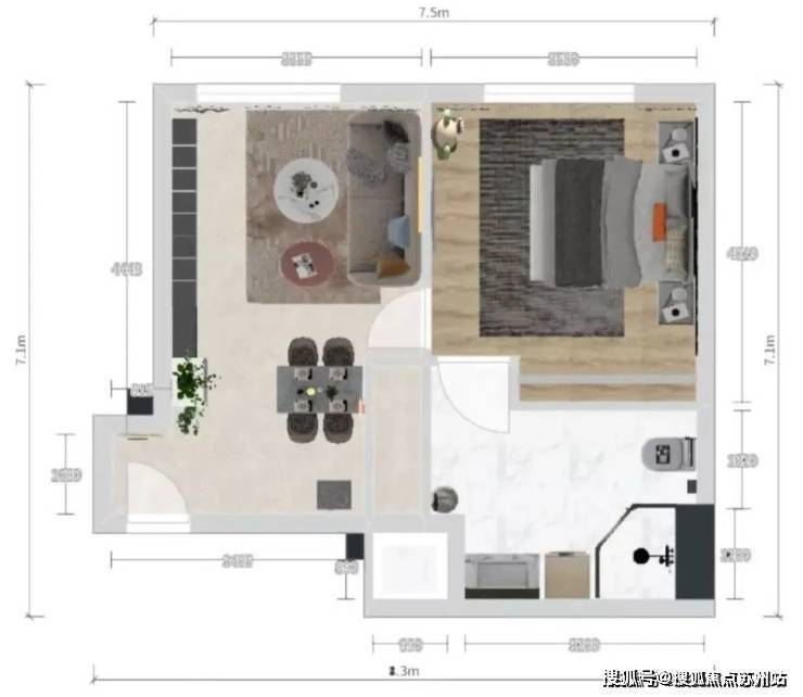 建面约44㎡户型图▼