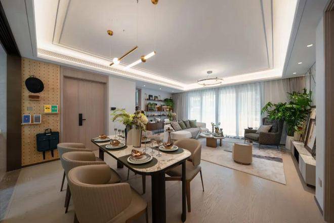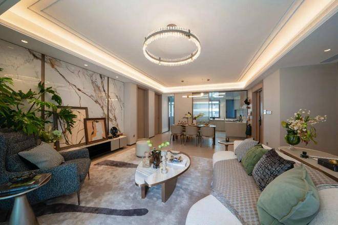 在景观打造方面,项目风格是新海派风格,特点是延续海派文化的典雅格调。整个社区采用“一环”“两轴”“三园”“六院” 的空间结构,展现现代海派的精致人居空间。