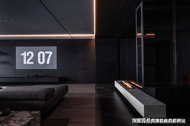 黑色所代表的并非是绝望和深渊,黑色在这个室内象征着宁静和整洁,以高度的统一感创造空间的和谐,打造了高品质的居所,规整的沙发、地毯以及嵌入墙体的壁龛,都汇集于此,用品质诉说着家的整洁。