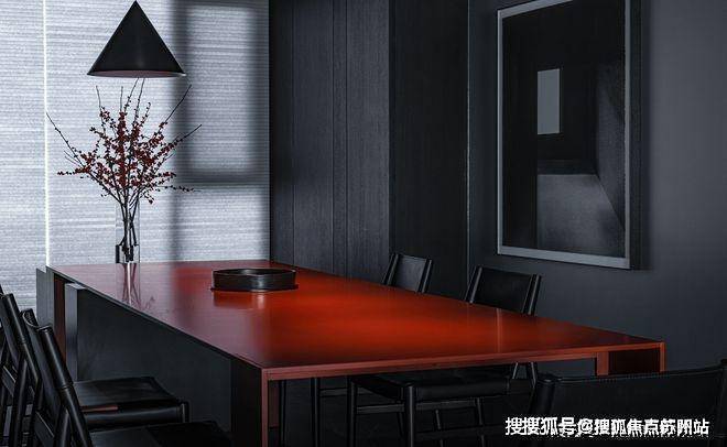 餐厨区选用了一体化的设计,让家的状态更加的融合,红色的餐桌犹如钻石一般耀眼,在黑色的居所中大胆的展示着自己惊艳的魅力,悄然之中为家融入了更多的艺术感。