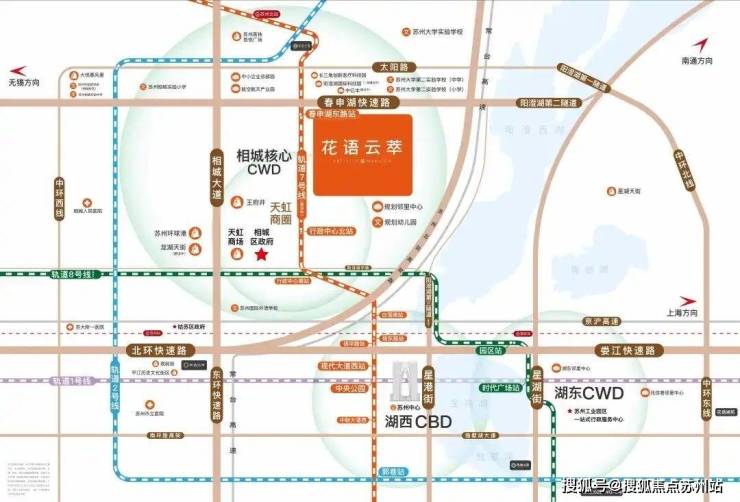 地面交通:北侧有中环北线春申湖快速路,往东连接澄阳立交,可联通苏州北站高架路和阳澄湖大道,去往青剑湖等地方便。