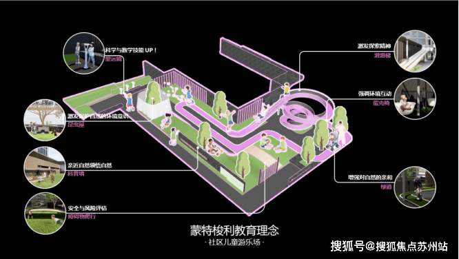打造林下会所,在花园中构建咖啡阅读、会客、社交空间,让自然与精神呼应;另外,为社区小业主专属定制蒙特梭利教育理念下现代住宅儿童活动空间。
