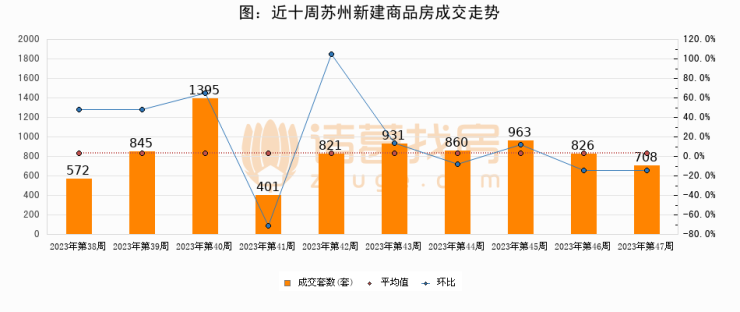 进入2023年第47周(11月13日-11月19日),苏州新建商品房成交708套,较上周减少118套,环比下降14.3%