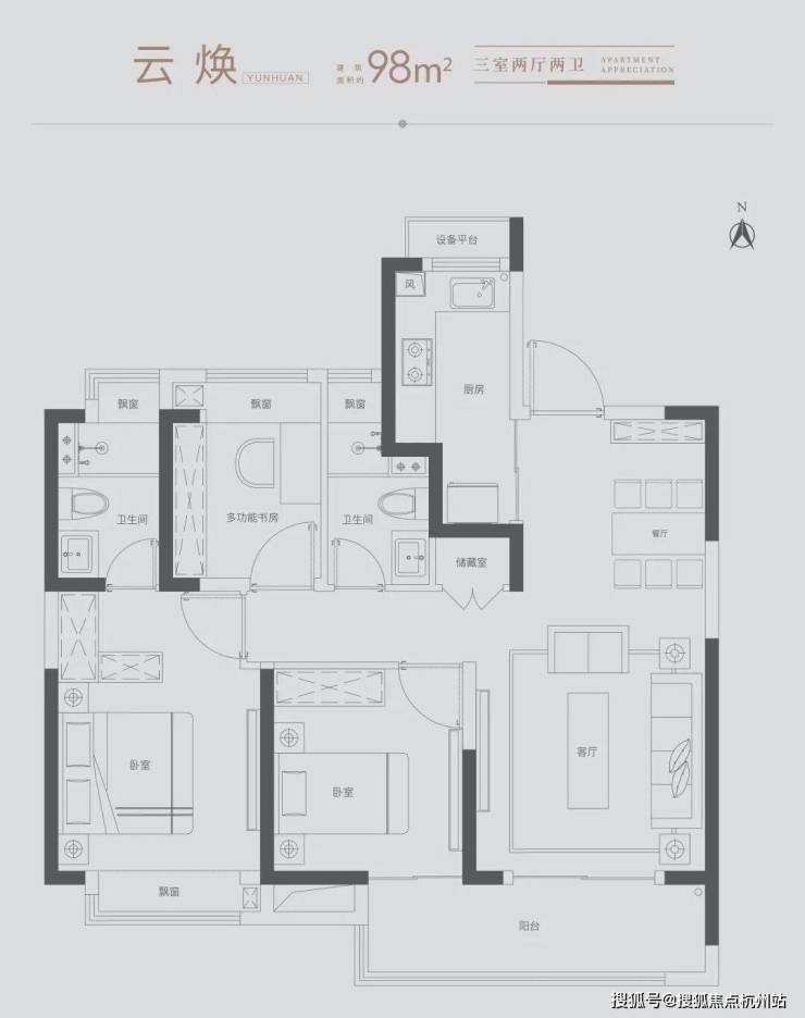 雅致三房:满足三口之家所需,北向房间可改造书房,理想生活一步到位