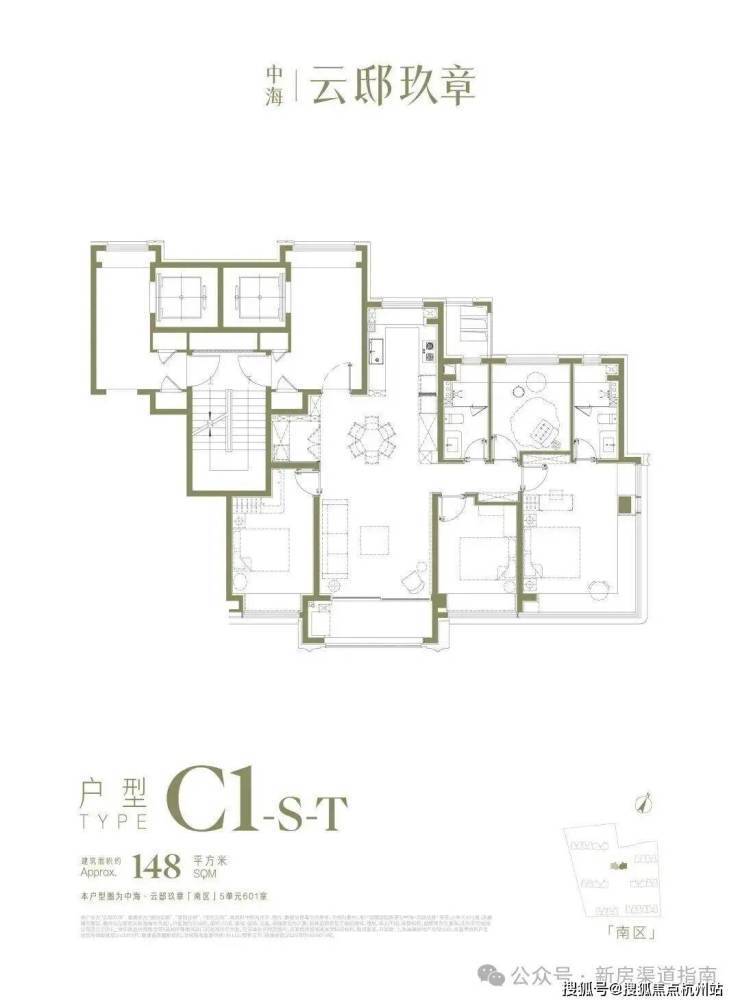 户型产品:主力约104-148㎡三至四房。148㎡户型为类一梯一户,四开间朝南,主卧带270°转角飘窗;104㎡总价约千万级。