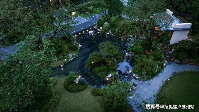 项目遵循 “三进礼序”,看似是对传统王府礼制的借鉴,实则暗合苏州人 “归家即入画” 的生活期待。一进 “山水迎客”,灵动的水景搭配低矮的绿植,没有刻意的堆砌,却有 “开门见山、临水而居” 的雅致,恰如苏州古宅前 “门前有水,屋后有山” 的格局;二进 “林荫步道”,并非简单种植新树,而是特意移栽百年古树 —— 这些历经岁月的树木,枝干虬劲、叶片繁茂,不仅带来 “一步一景” 的层次感,更让居住者能触摸到 “时光的温度”,这份对 “老物件” 的珍视,与苏州人偏爱 “老木家具、古瓷摆件” 的情怀不谋而合;三进 “宅间庭院”,选用进口石材打造小品,石材的肌理与周围的花木相映成趣,既有现代设计的简洁,又保留了苏州园林 “虽由人作,宛自天开” 的精髓。