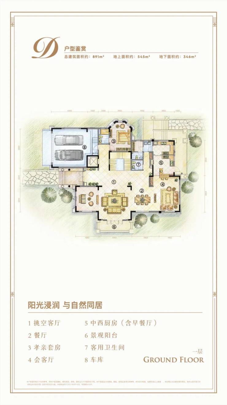 DOUBLELIVINGROOMS奢阔双客厅:双首层设计,双入户模式,双客厅配置:D户型,逾18米南向面宽,一楼约10米挑高大堂,款待宾客,尽享尊崇;阳光庭院层,花园入户,友人相聚,畅享午后慵懒阳光.