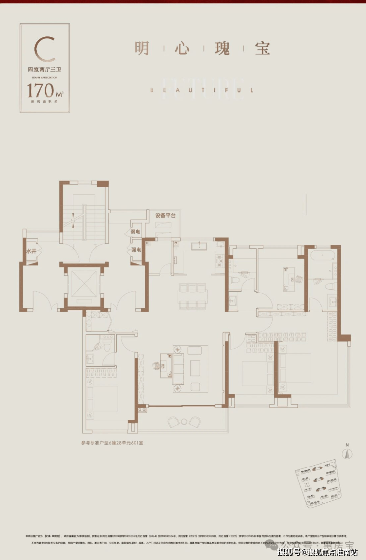 170户型通过“零走道”飞机式格局,采用电梯双开门的类一梯一户设计,极具注重隐私和尊贵体验感。四开间朝南的超大面宽,做到了客餐厅厨房一体化+双套房设计,还贴心配置了主卧独立浴缸、家政间和储藏室等,边户户型更享有270度转角飘窗。将居住功能性与品质感完美呈现,是市场上难得收藏之作。