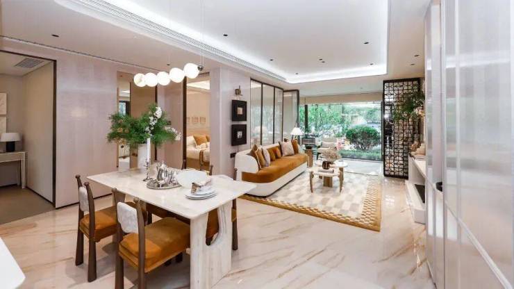 前沿中横厅设计实现0走廊、0浪费,餐厅+过道约5米面宽,哪怕放6人桌仍留足过道空间,面积直接对标市面130㎡以上户型。
