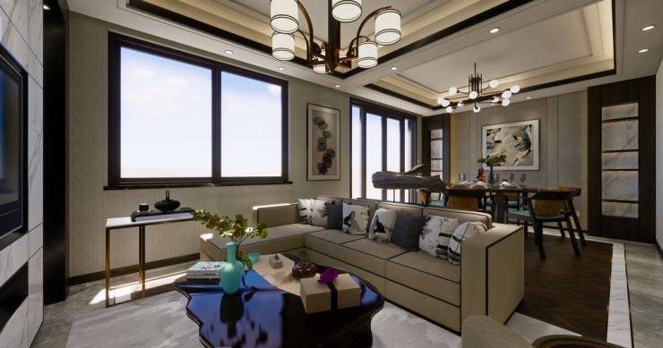 从产品形态上看,建邦国宸府打造的是金山新城极为稀缺的墅居产品,由高层+叠墅组成,建筑风格为现代中式滨海风格.其透露出的中式意境和构图美学我们可以从景观绿化一窥端倪: