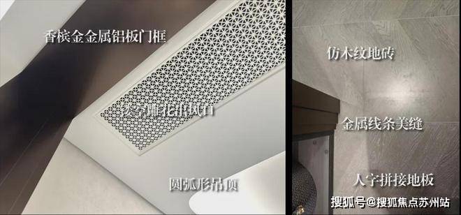 还打造了海派雕花出风口、卧室地面鱼骨拼接、卫生间地面复古拼花、香槟金金属铝板门框、金属踢脚线等元素,整个海派美学居住空间精致有腔调~