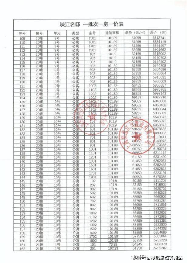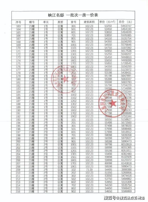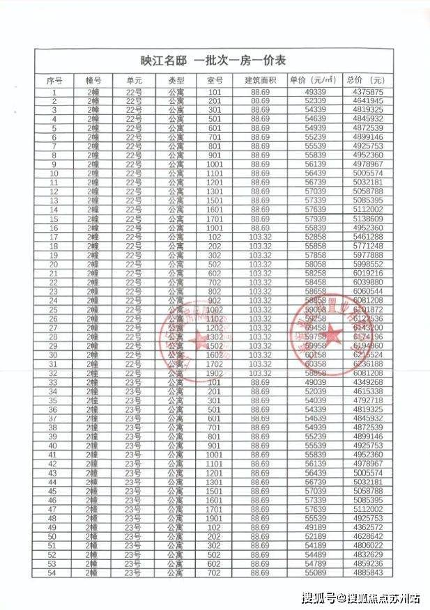 一房一价表: