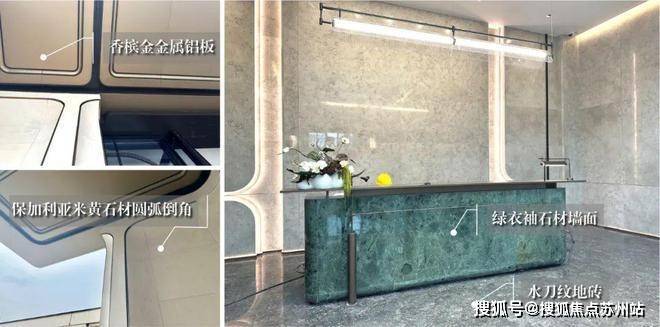 约千平的入户花园+高奢社区大门(高6米宽50米),采用比普通石材贵7-10倍的珍稀保加利亚沉香米黄石材通体干挂,手工打磨的圆弧倒角,配合香槟金的铝板进行点缀,豪宅归家仪式感瞬间拉满!恢弘大气之感扑面而来~
