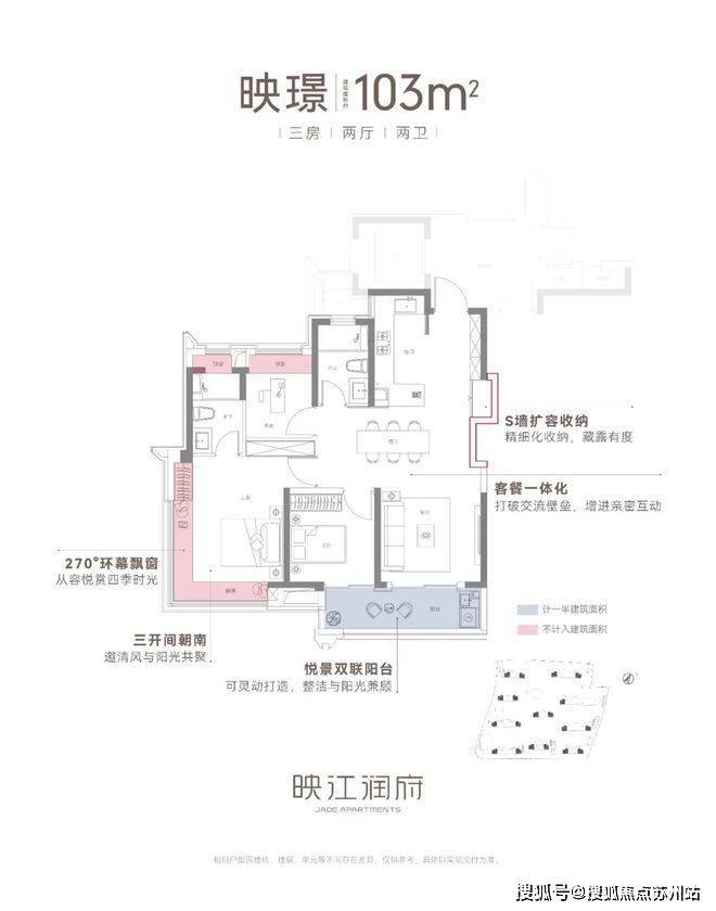 建面约103㎡3房2厅2卫边套户型