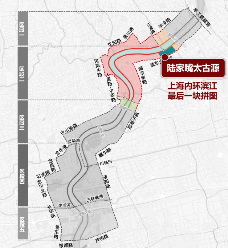 陆家嘴太古源分为5个子地块,位于陆家嘴金融城北侧滨江区域。