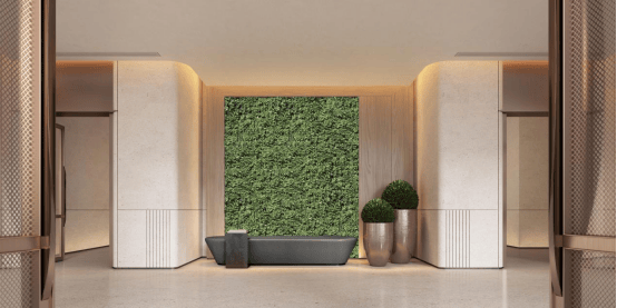 B2层单元大堂,绿植背景墙巧妙融入,为现代简约的空间注入盎然生机,营造自然与人文的和谐共鸣。