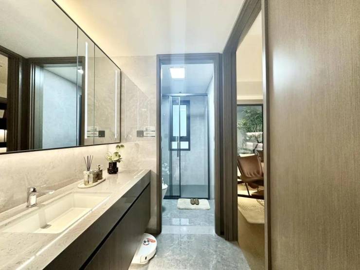 酒店化主卧设计,拥有预留衣帽空间+卫生间,衣帽间还有预留梳妆台空间,隐私性极强!景观视野也是相当震撼!
