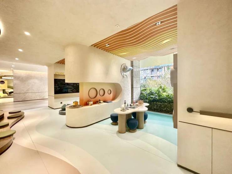 社区内部还有开放式架空层设计,结合建筑、空间、自然环境关系,室内室外联动,呈现一个 景观会客、海浪书屋、儿童休闲 等多重功能的开放式 架空层 ,目前实景基本还原效果图,未来业主及孩子也有一个玩乐及阅读的开放式公共空间,更具生活趣味~