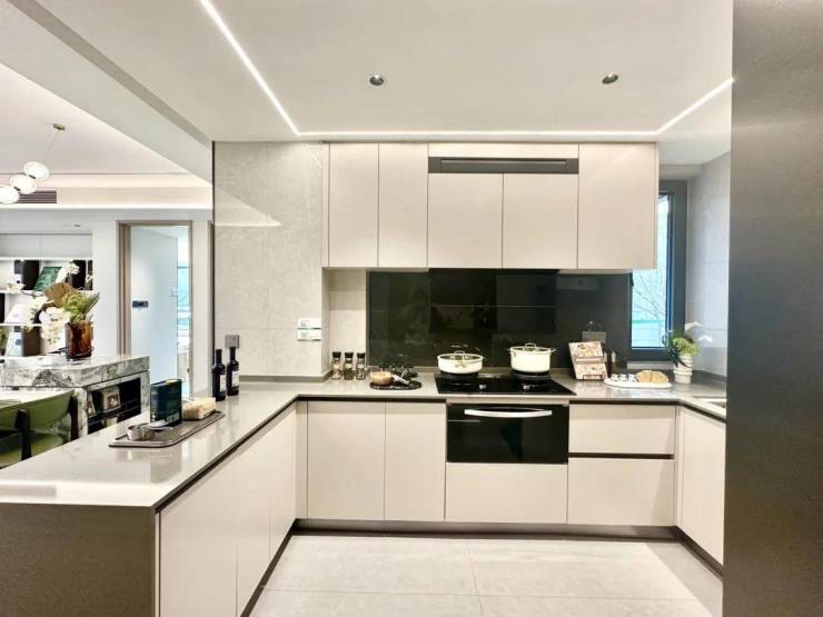 U型厨房开放式设计空间通透性更强,人性化细节到位!