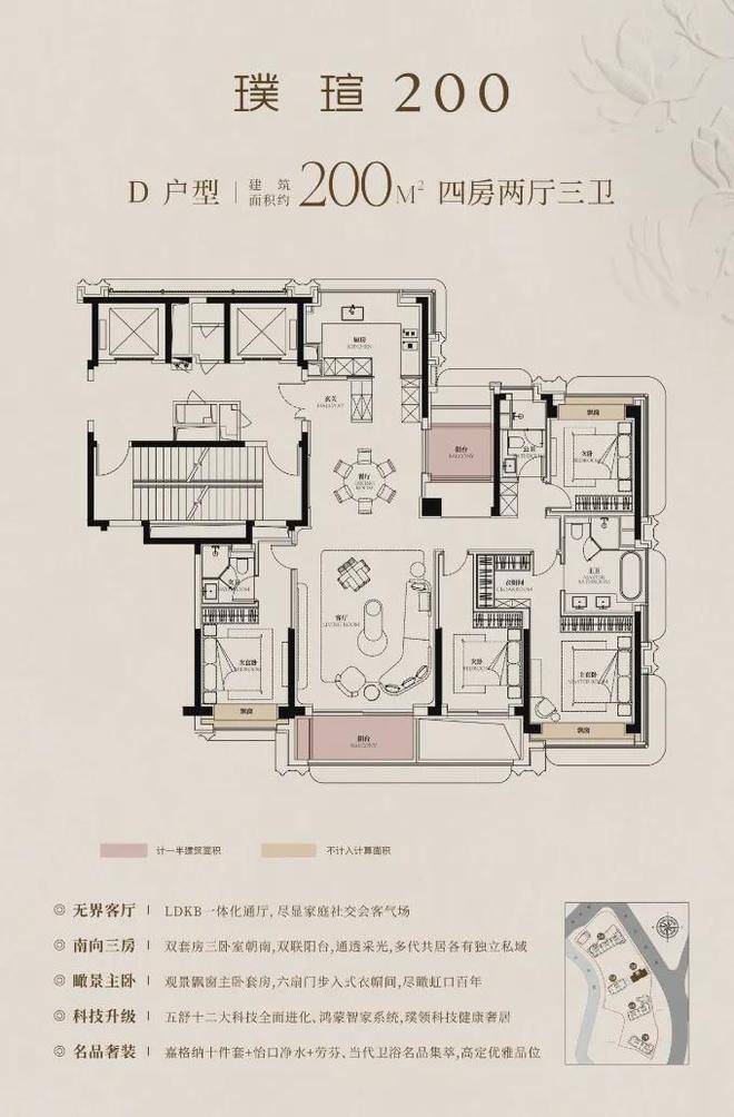 三期【璞瑄200】,作为内环内珍稀的200㎡五房科技大宅,将东方美学从观赏彻底融入日常。浓郁的东方气韵与自在从容的生活感在此浑然一体。