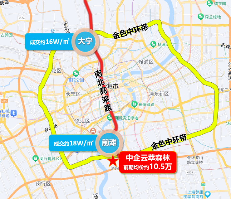 在此之前,同样背靠“南北高架+金色中环”一飞冲天的板块有两个。