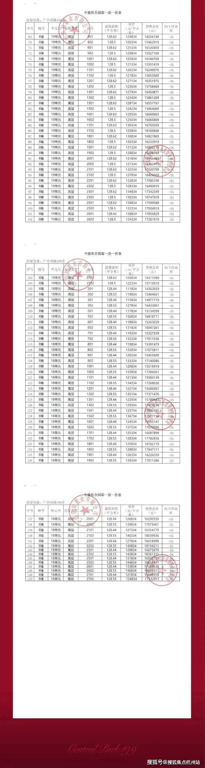 中建玖上琅宸一房一价表: