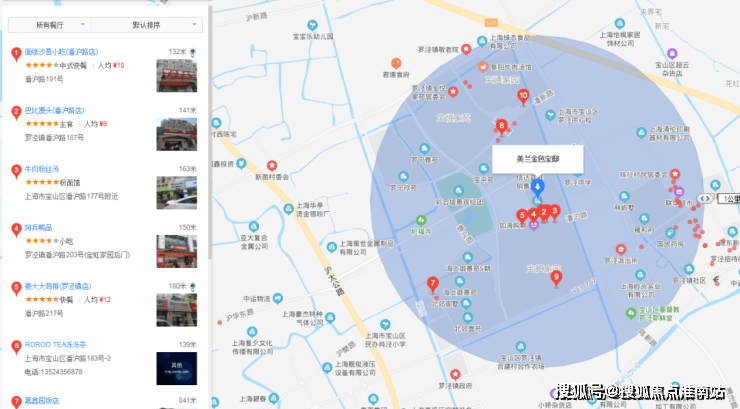 其它及饮食:豪大大鸡排(266米)、赵鱼头(507米)、赵鱼头成通酒家(553米)、成通大酒店(555米)、森绿人家常菜馆(674米)、都是客酒店(罗泾店)(683米)、水上饭店(陈镇路)(695米)、宝祥桥(51米)、小朱桥(114米)、宝一房产(120米)、村夫烤鱼(690米)、徐介路(333米)