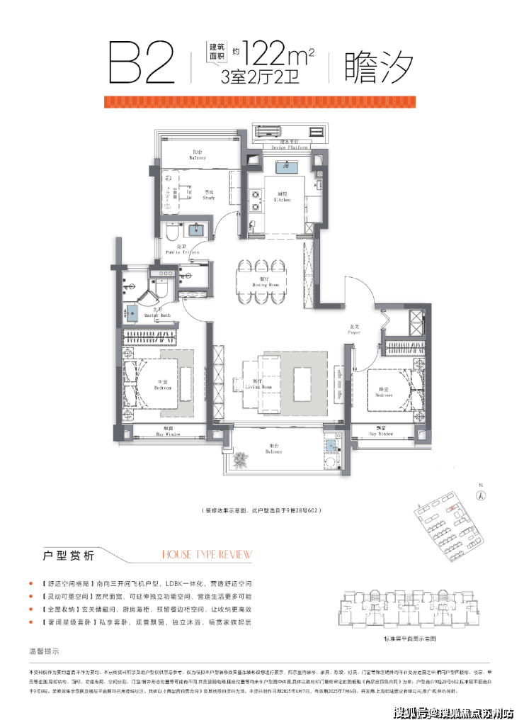 建面约163m上叠,4房2厅3卫,共计约38套,上叠的户型布局其本与下叠一致,附赠南北露台,边套户型的客厅以及主卧同样也是270°飘窗!