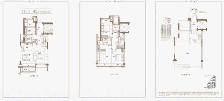 建面约139㎡上叠户型,三层是会客区,四层是居住区,阳台+露台+多个飘窗设计,附加空间非常大,在别墅类产品中实属罕见!