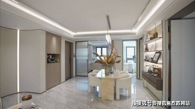 全墙纸交标结合整幅岩板客厅景墙,以定制设计感提升空间立体感。保利西郊和煦售楼处电话:400-8123-664