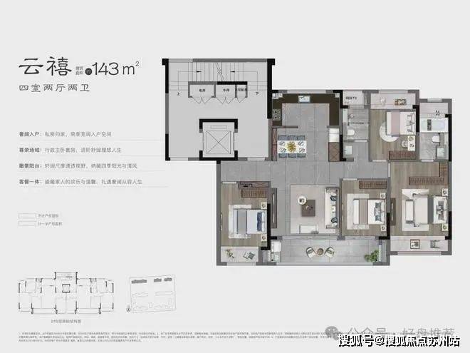 户型配比:小高层约125-138㎡,洋房约143-159㎡