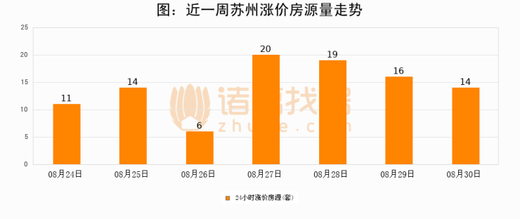 根据诸葛找房数据显示,苏州24小时涨价房源量为14套,较08月29日减少2套,环比下降12.5%。与此同时,涨价房源占比小幅回落,对于购房者来说是一个入市窗口期,购房者可抓住时机入市。