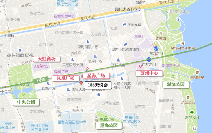 商业配套上,苏州中心、环球188广场、苏悦广场、天虹商场等,都在其周边,全都是苏州知名的商业地标。