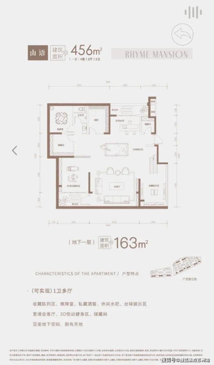 3、地下一层的功能空间辽阔,可容纳众多休闲设想,能演绎成休闲水吧、私藏酒窖、室内高尔夫、音乐演奏厅、3D 电竞区、DOLBY 影音室、棋牌室、台球室等;孩子们的临帖挥毫区域、童趣阅览室、钢琴演奏厅等美育生活培养范式,老人们的象棋博弈室、卡牌互动区、亲子游戏厅等天伦共乐的理想实践,均能在此实现。