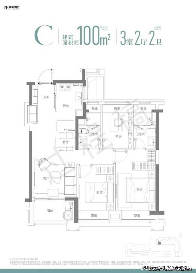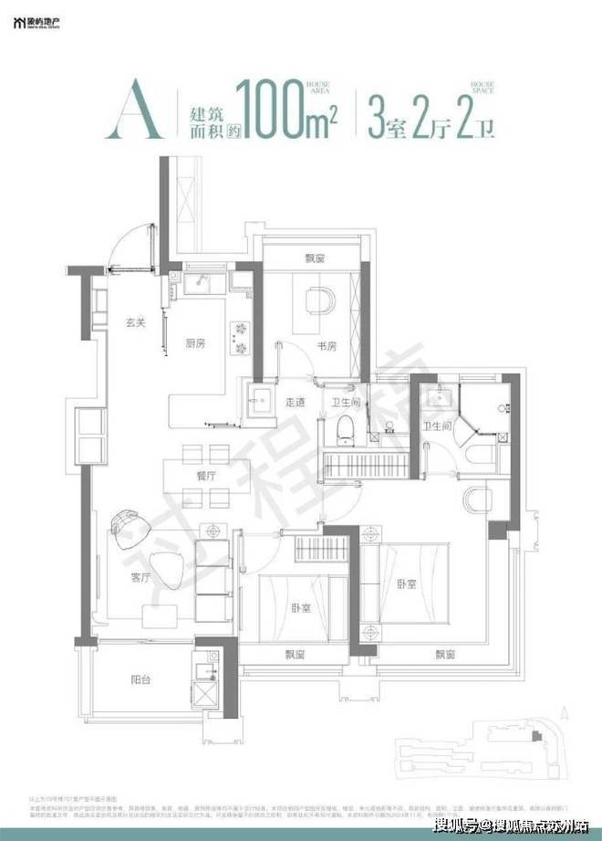 项目高层产品均为100㎡左右3房户型,一梯6户:
