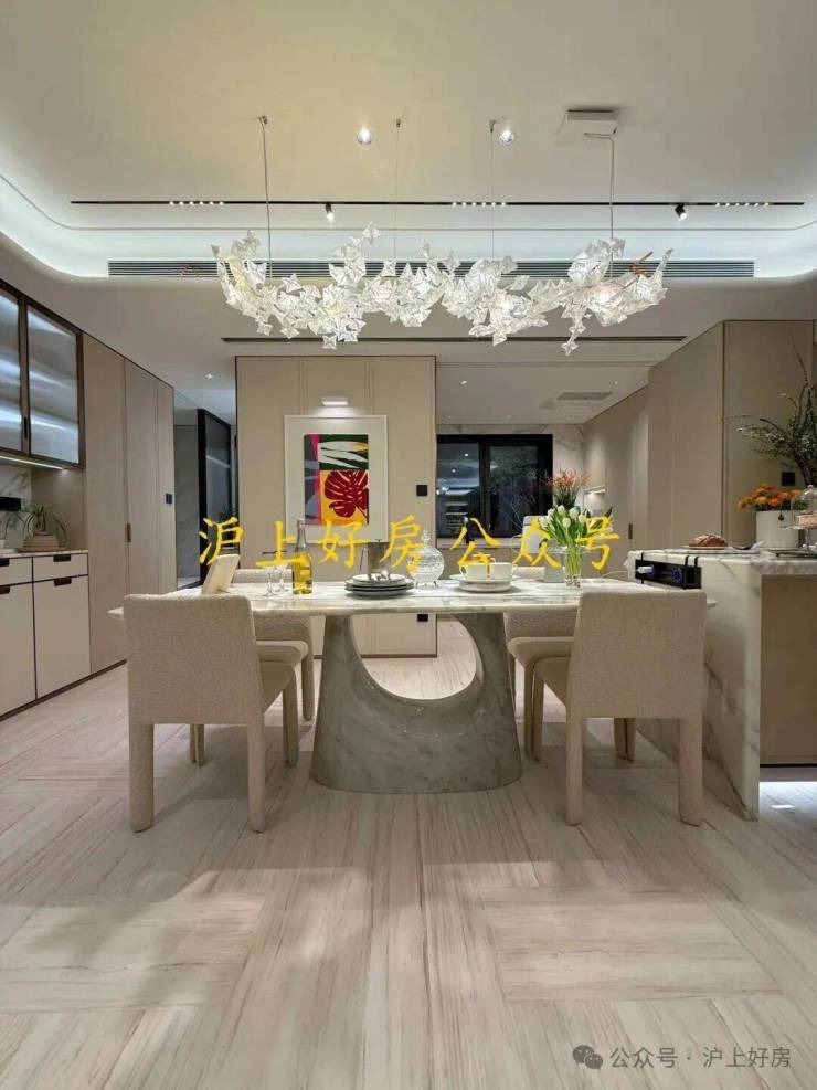设计背书由问鼎国际大奖的著名设计师吴滨操刀,延续其“汤臣一品5亿顶复”的“摩登东方”理念。以黄浦江为灵感,营造“阅尽千帆后的宁静与松弛感”。通过8.5米南向宽厅、270°环幕玻璃、无冗余装饰的减法美学,让空间如江面般舒展,视野极度开阔。