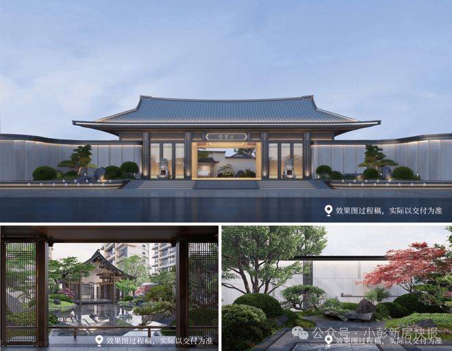 宽约58米的府门,将千古王宫贵胄御用的歇山顶化为浦城名望家族传承的身份象征;承袭新中式理念打造的东方园林,采用框景、对景等手法,将浦城三千里壮丽河川复刻入园;更将浦城“九龙桂”作为项目精神图腾,融入视觉IP设计,起敬千年丹桂文化。