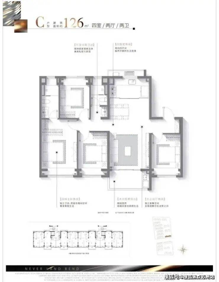 【招商·云澜湾】售楼处电话☎:400-812-3664✔✔建面约126㎡四房两厅两卫,更大限度保留了南向房间,四开间朝南,并且是LDKG一体化设计,全飘窗设计,更大大增加了室内尺度感和实用空间。