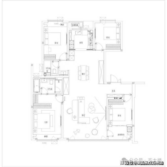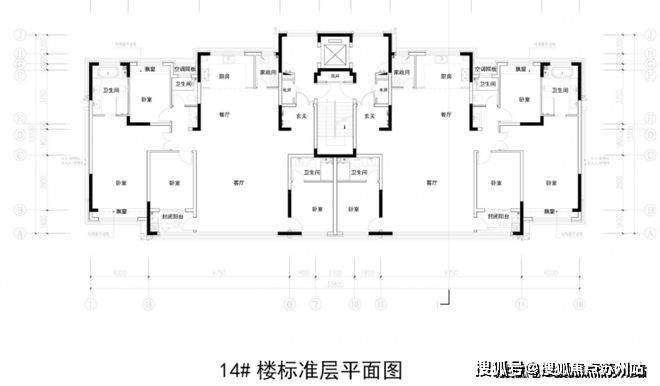 2梯4户设计,西边户为4房2卫
