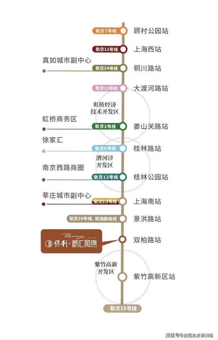 保利·都汇和煦与轨交15号线直线距离仅约500米(百度地图测绘),这不仅是物理上的近距离,更是与上海“科创黄金线”的零距离握手。15号线作为串联南北的产业大动脉,接驳3大科创产业区、5大中心、12大园区,让项目真正成为上海科创资源环流的核心节点。
