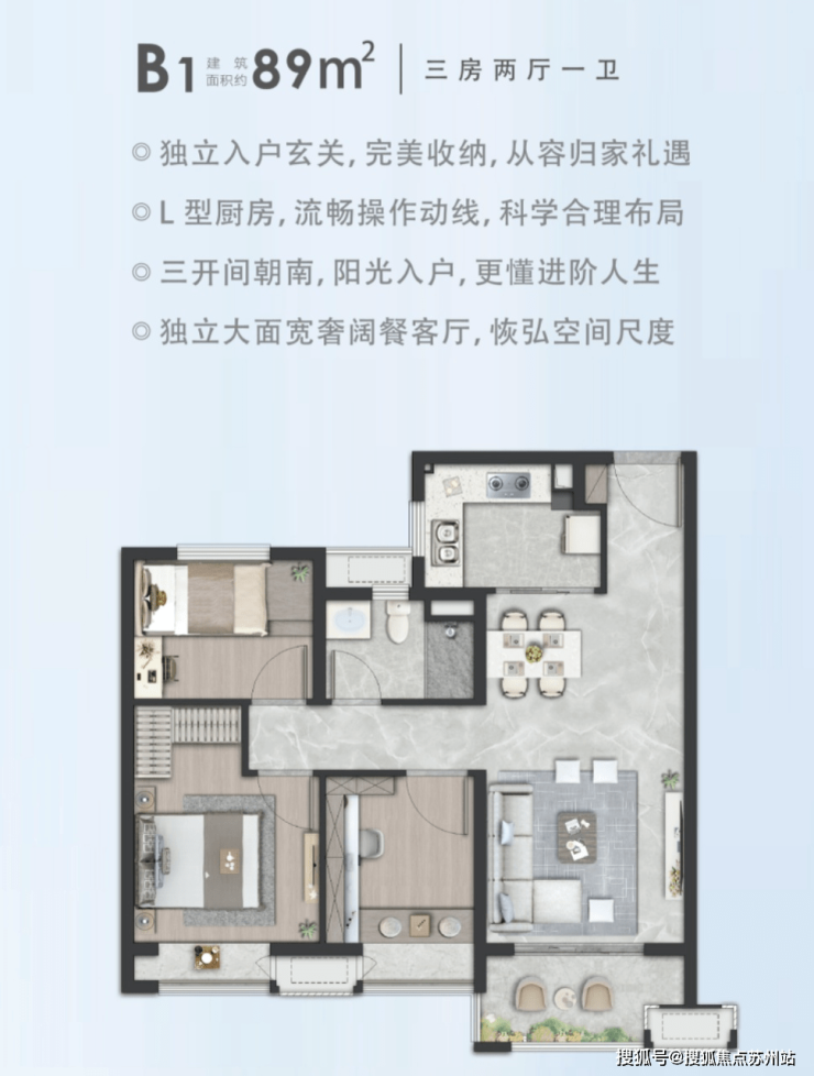 在售户型:89平3-2-1; 103平3-2-2