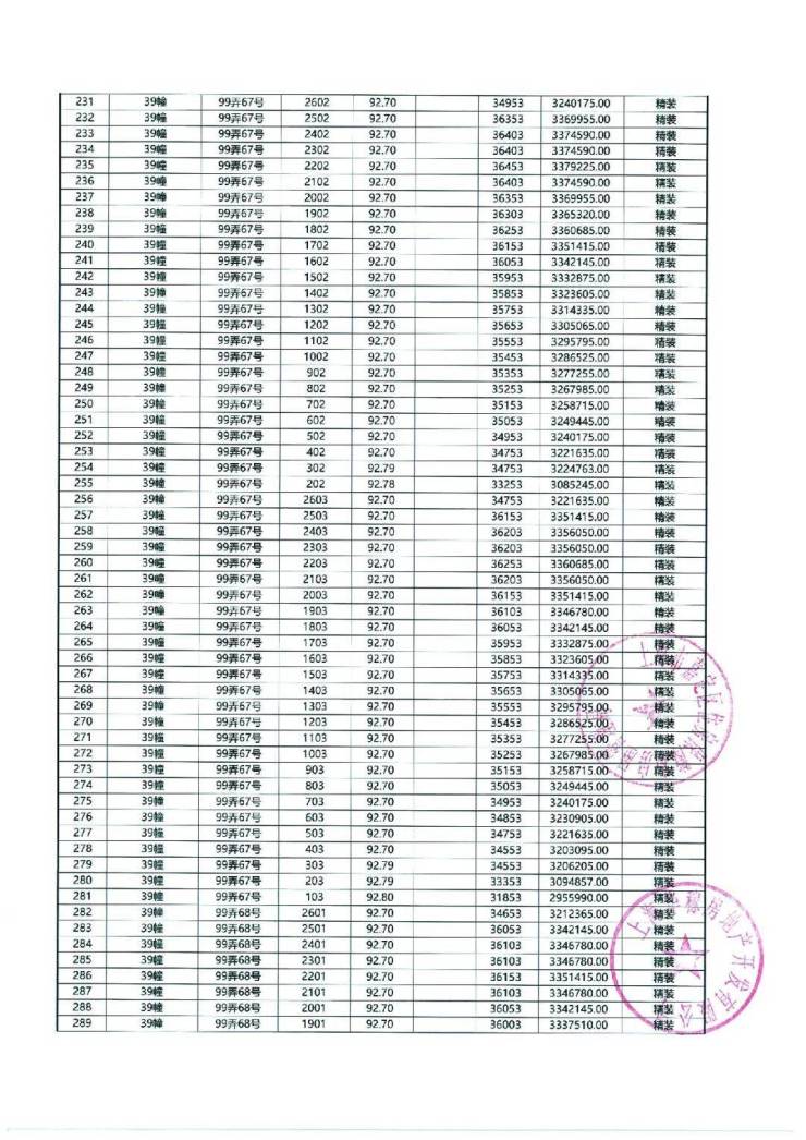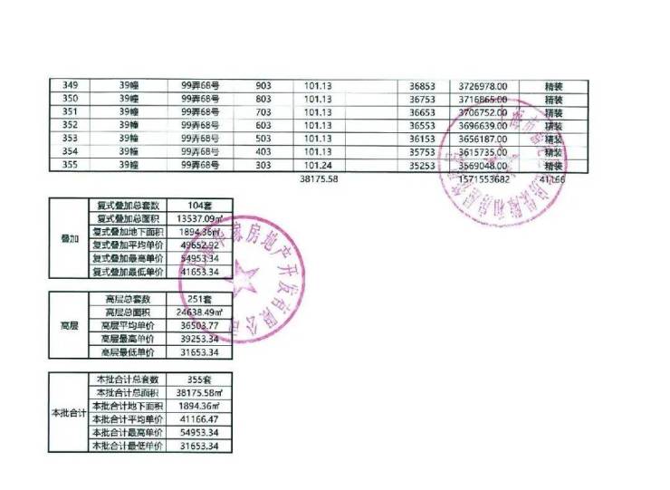 以下为项目最新一房一价表