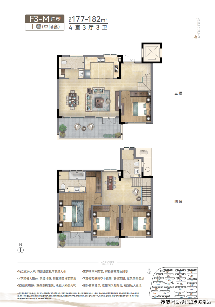 中式叠院-户户有景观、家家有园林 融合苏州园林、海派建筑精髓,通过退台设计营造更大的露台、阳台空间;多层次立体庭院,犹如空中花园,塑造中国花园式美好范本。