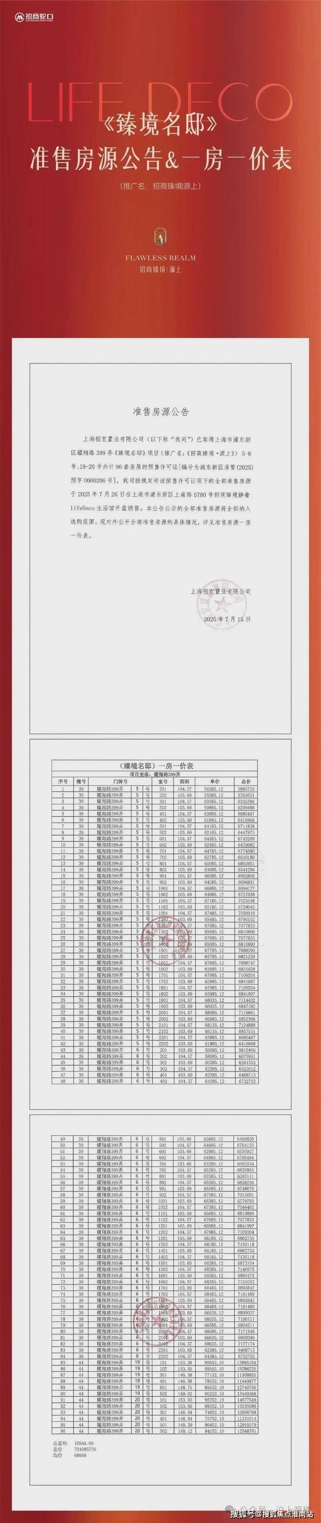 浦东三林 总价530万起 三阳台王炸产品【招商臻境】加推建面约93-150㎡公寓&叠墅!均价69657元/㎡!一房一价首发!