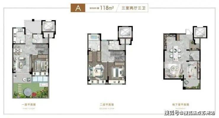 约123平上叠3房户型,共上下两层,全明设计,格局开阔,宽景阳台,上承天空,下承生活。
