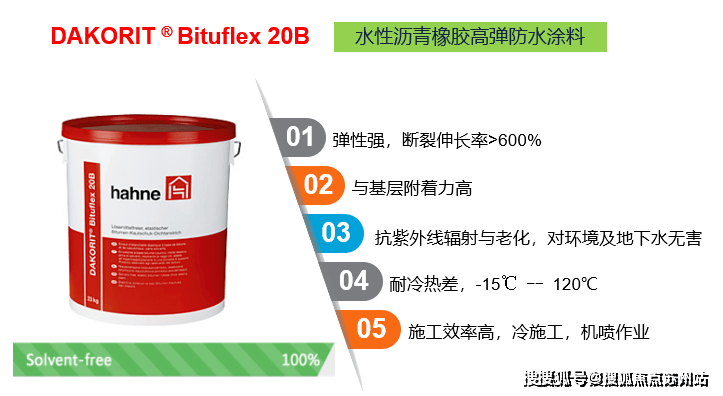 此外,项目采用防水界的“爱马仕”——德国悍能的防水系统,其达到欧洲环保要求,整体技术指标高于国家标准50%。相比传统的卷材,悍能不仅稳定性高,且能够完全贴合地面、形成无缝的完整防水面,后期维护更方便。