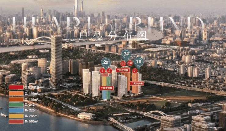 加推涉及3栋楼,建面约125-286㎡多个户型,其中位置最优质的2号楼绝对的滨江头排,拥有最优质的江景和城市天际线视野,24米以上即可拥有很高的看江概率,15F以上绝美江景视野