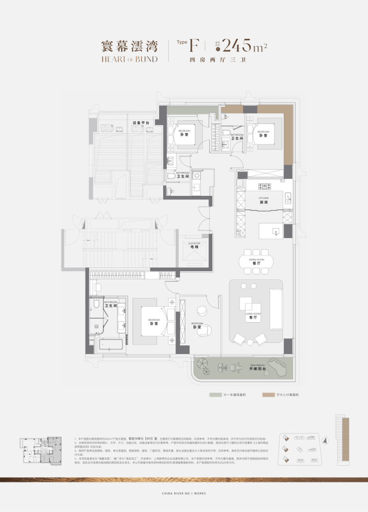 245㎡四房两厅两卫,江景+园景双面盛景,约17m边厅视野+独权主卧,南向浴缸体验极致享受。